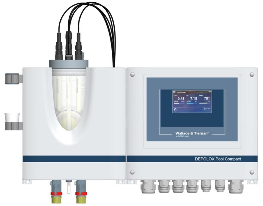 De DEPOLOX® Pool Compact is een slimme meet- en regelunit voor zwembadwater. Hij bewaakt automatisch chloor, pH, ORP, temperatuur en geleidbaarheid. Met touchscreen, LED-statusweergave en webinterface is bediening eenvoudig, lokaal of op afstand. Compact, betrouwbaar en ideaal voor constante waterkwaliteit.